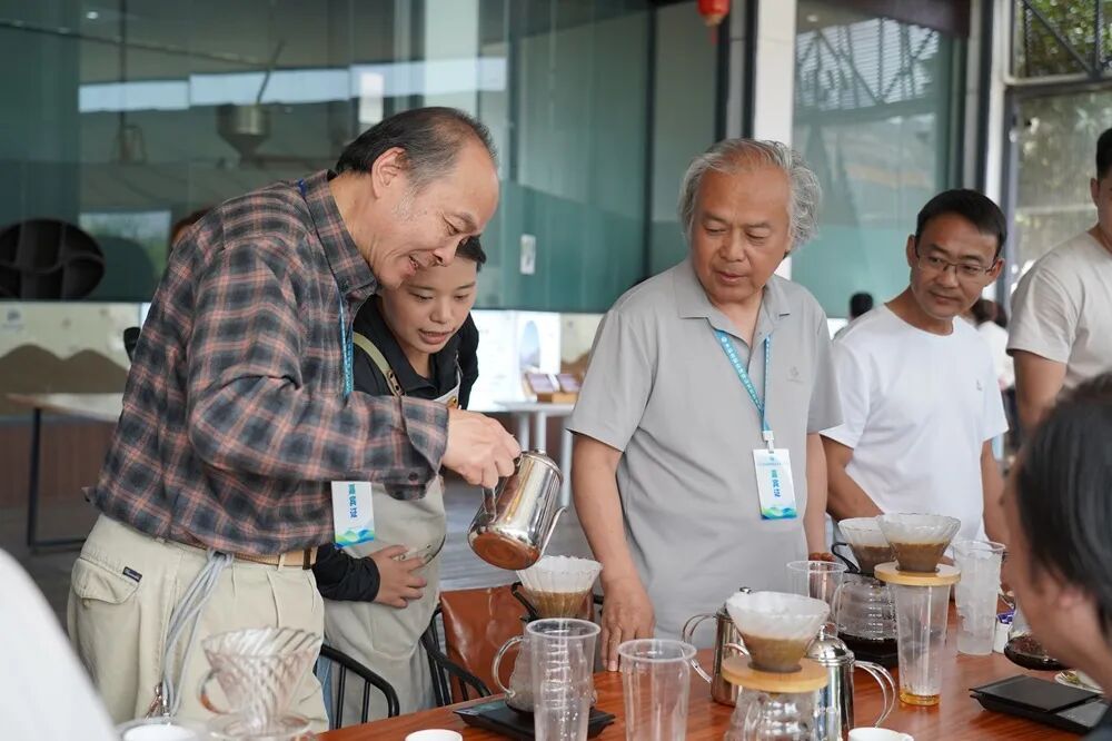 活动当天,水彩名家们走进高黎贡山脚下的隆阳区潞江镇比顿咖啡产业文化园。在解说员的引导下,水彩名家们详细了解保山咖啡的种植历史与文化,沉浸式参观咖啡、芒果、火龙果等热经作物种植区,并现场即兴创作。期间,水彩名家们还体验了手冲咖啡,研磨、注水、出液,浓郁的咖啡香气弥漫现场,赢得阵阵赞叹。