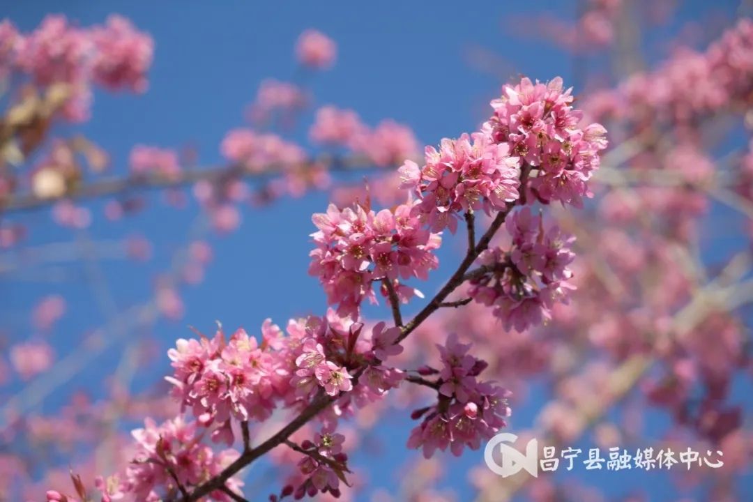 “十日樱花作意开,绕花岂惜日千回。”冬至前后,昌宁县境内的数万株樱花竞相开放,粉色的樱花在绿色茶园的映衬下分外艳丽,绘成了一幅幅樱美茶香的唯美画卷。