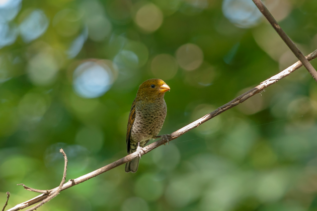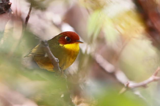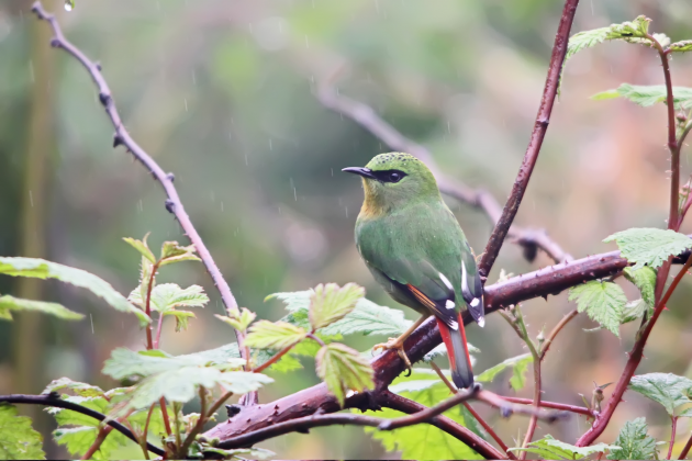 白尾梢虹雉、剑嘴鹛、火尾绿鹛曾被观鸟圈冠以“高黎贡山鸟类三宝”之名。图为火尾绿鹛雌鸟,在百花岭南斋公房附近曾有观鸟者观察记录到过它们的身影。摄影/高歌