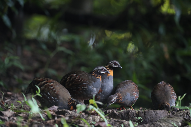 如果在高黎贡山观鸟,你常常会听到单音节口哨一般的鸟叫声,那很有可能就是红喉山鹧鸪。但很多时候你只能闻其声,却见不到其影。在百花岭鸟塘里,红喉山鹧鸪却被喂养得差不多和家鸡一般任你观赏拍摄。摄影/曾祥乐