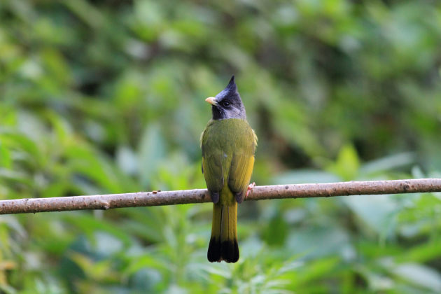 高高的发冠,酷酷的造型,如果你在百花岭观鸟,黄颈凤鹛是你一定会看到的鸟种。 摄影/罗旭