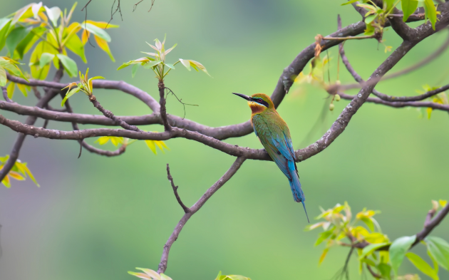 高黎贡山垂直落差大,不同海拔段分布着不同的特色鸟种。栗喉蜂虎是云南的夏候鸟,常集群在高黎贡山百花岭的怒江畔土崖地带繁殖。 摄影/冉冉129