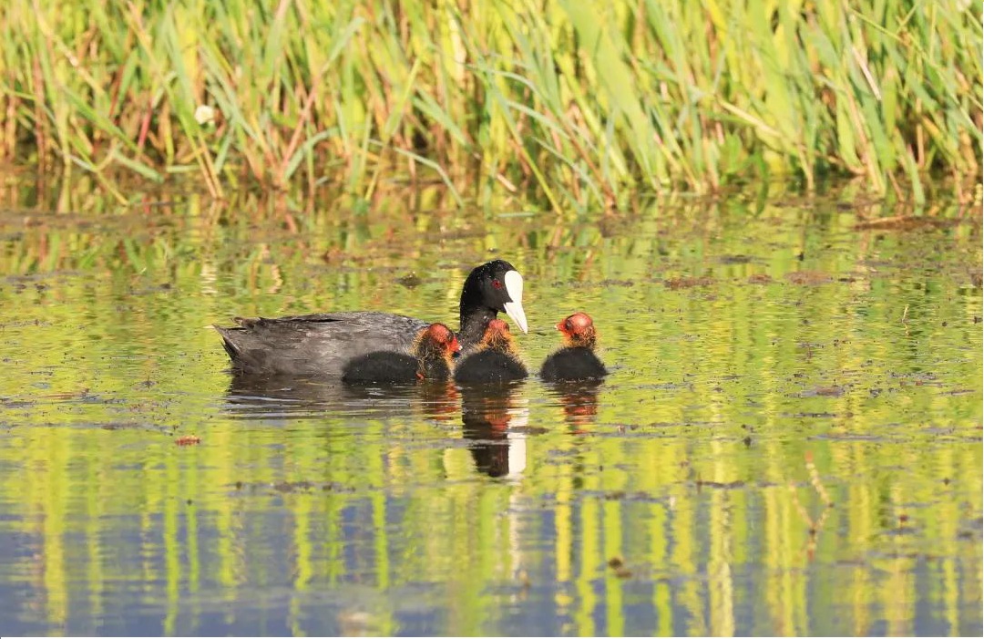▲ 2020年7月青华海首次记录到骨顶鸡野外繁殖 段红莲摄