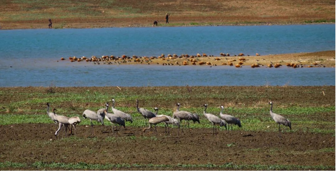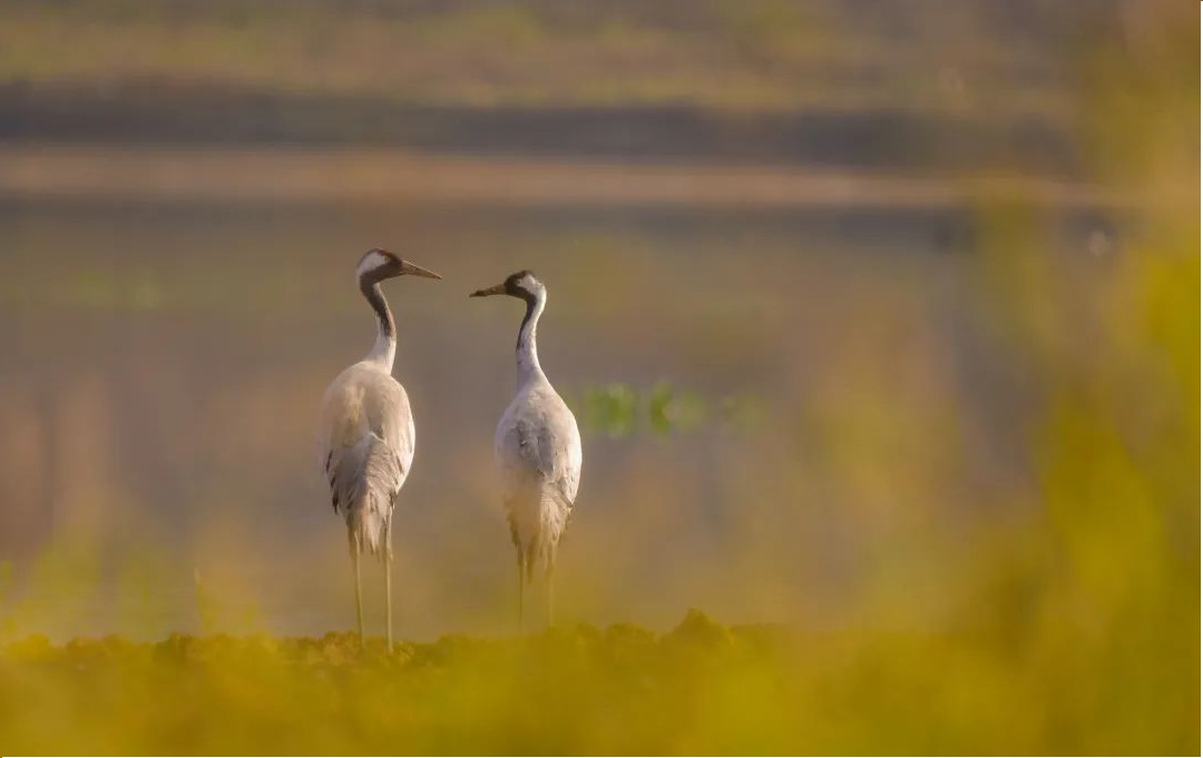 ▲ 冬候鸟们(灰鹤和雁鸭类)钱文摄