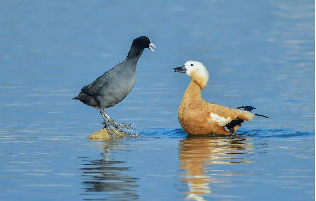 ▲ 骨顶鸡和赤麻鸭 蔡庆彪摄