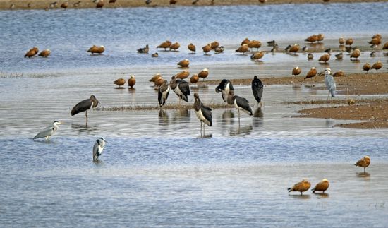 黑鹳是世界濒危珍禽,国家一级重点保护野生动物。根据湿地国际2006年的统计数据,全球黑鹳种群数量约2.4万-4.4万只,在中国约有1000只左右的越冬个体,其珍稀程度不亚于大熊猫,因此被誉为“鸟中大熊猫”,难得一见。