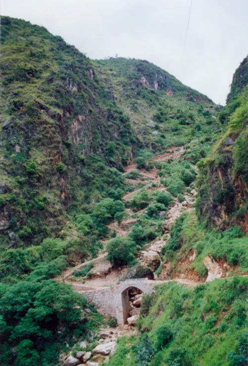 下坡的第一段,称为“倒马坎”,据说是因山路陡险,“马蹄高下处,一步一心惊”(黄万春诗),跋涉艰难,故得名。道路穿行于水寨河旁,两旁丹崖夹峙,怪石倒立,沟壑箐深,似一条苍龙卧于山壑。
