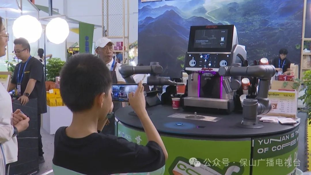 保山壹丁农业科技发展有限公司则在现场投放了一台全自动拉花咖啡机,只需调节好参数,机器就能在80秒内为顾客制作出美式、拿铁、卡布奇诺等咖啡。如此科技感十足的设备,吸引了众多咖啡爱好者。