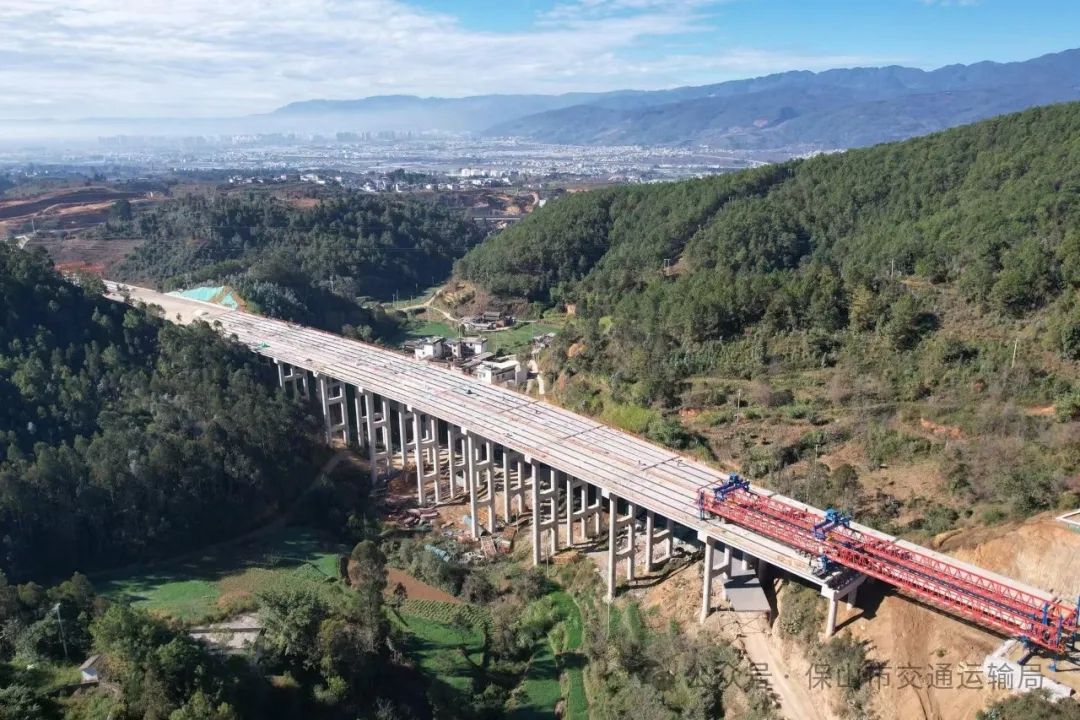 本次梁板架设完成的主线桥由左右两幅组成,左幅桥共三联,桥长336.08米,右幅桥共四联,桥长366.08米。梁板的成功架设,为后续陈家田大桥、干河大桥等桥梁的梁板运输提供了运梁通道,极大缩短工程建设周期。11月28日,大理至保山高速老营至板桥段改线工程隆营立交首跨钢箱梁顺利吊装。