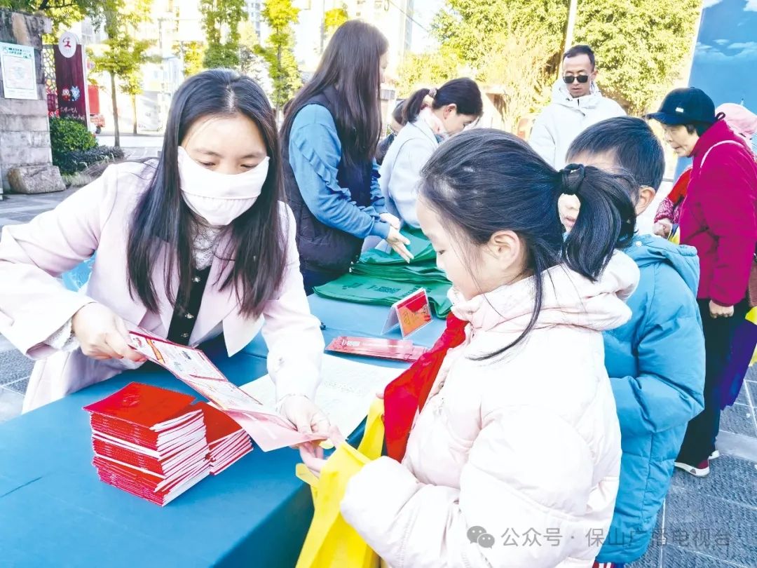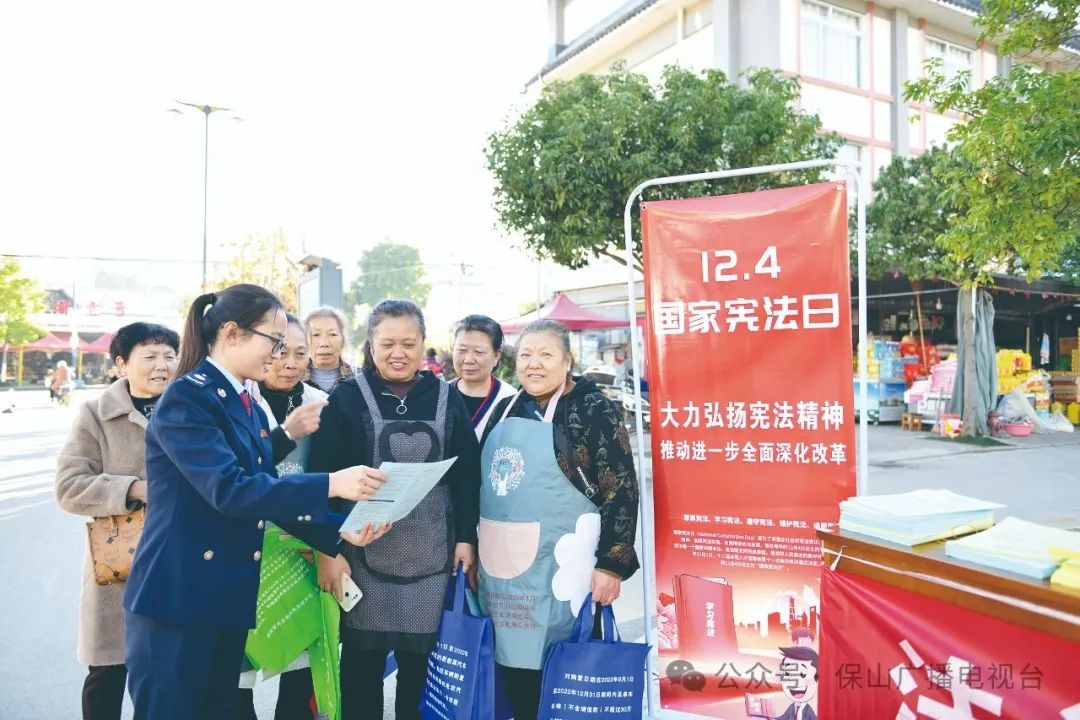 施甸县税务局工作人员在集市为群众普及宪法及税收政策。