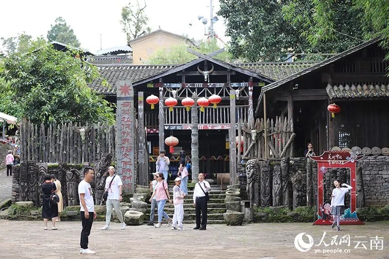 游客在司莫拉佤族民俗文化陈列馆参观。