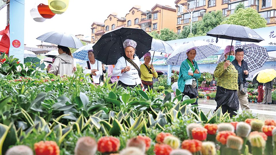 每年端午时节,隆阳“满城皆花、群芳斗艳”的盛景,早已成为当地独特的文化记忆与情感共鸣。本届花街在延续传统赏花购物体验的基础上,增设非遗文创展区、乡镇特色展区等板块,共搭建展位2000余个,1700余家商户参展,其中80个展位汇聚超20个国家的商品,通过“节庆+商贸+文旅”的多维度联动,打造滇西区域性文化名片。