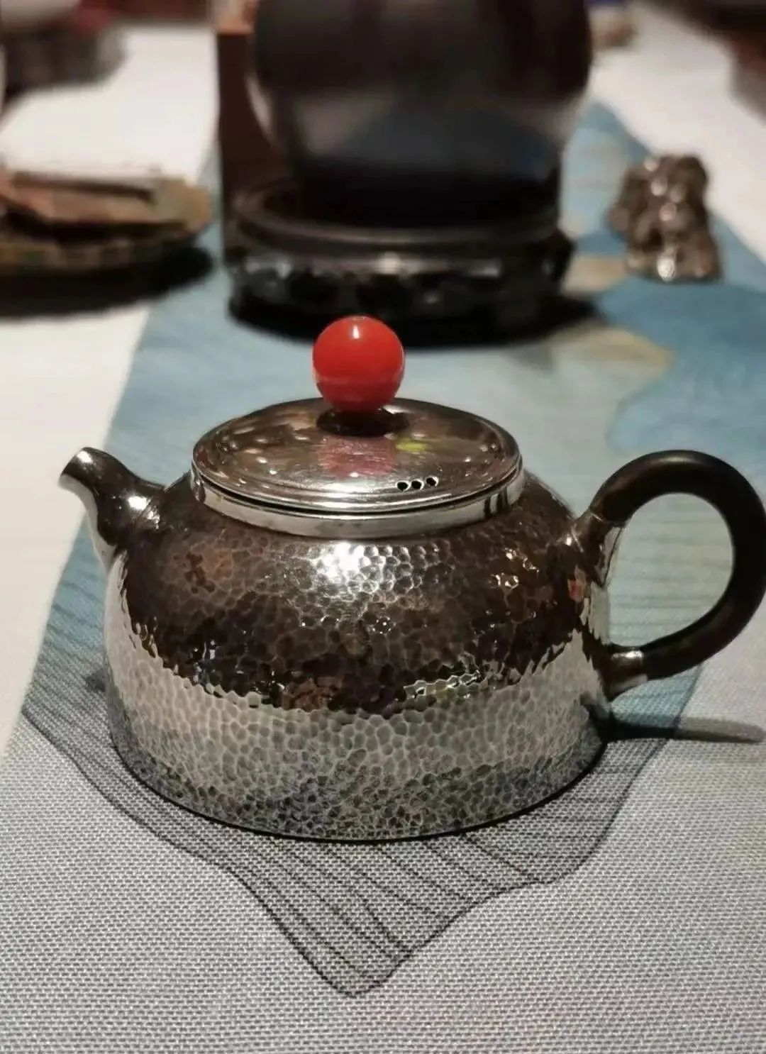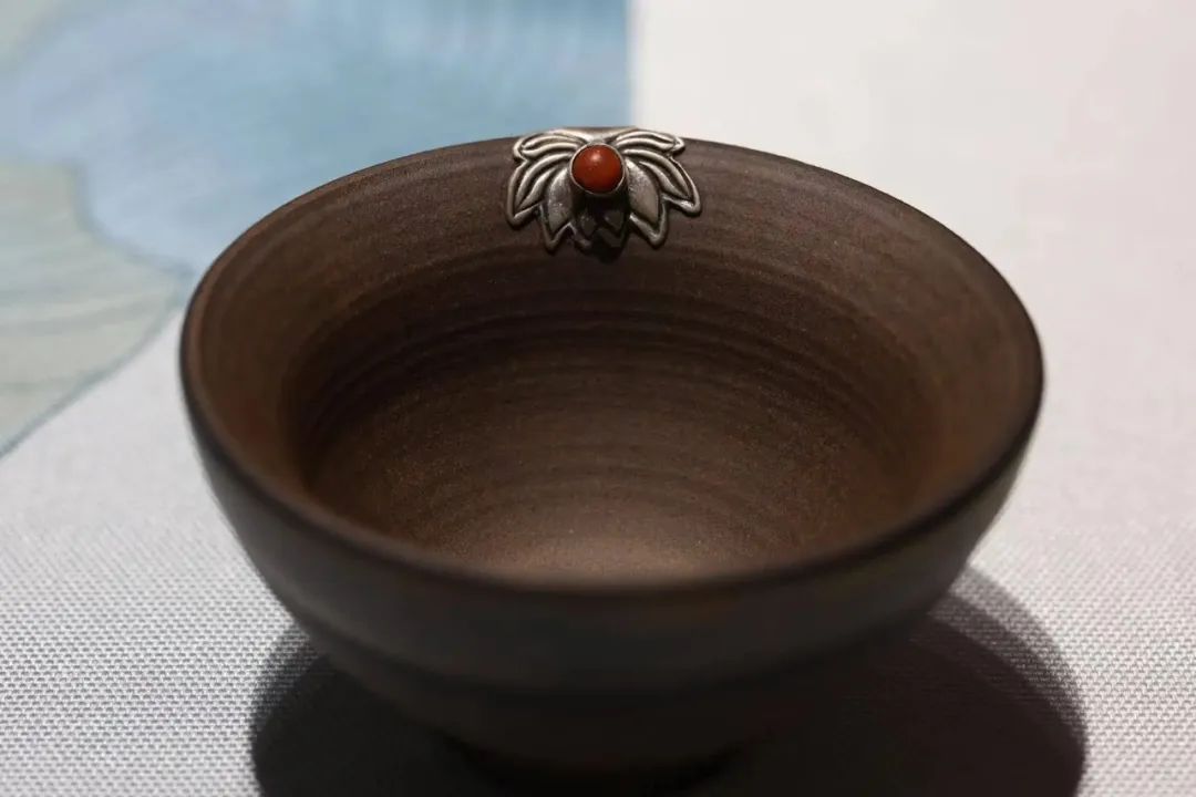 工作室的展柜里,“‘荷’气生财”“‘红’运当头”“问道”等作品静静陈列。一颗保山出产的优质南红珠子镶嵌的盖碗让一个原本平淡无奇的杯子生出灵韵;一个“北斗七星”的巧思让一个茶罐有了不一样的意蕴。