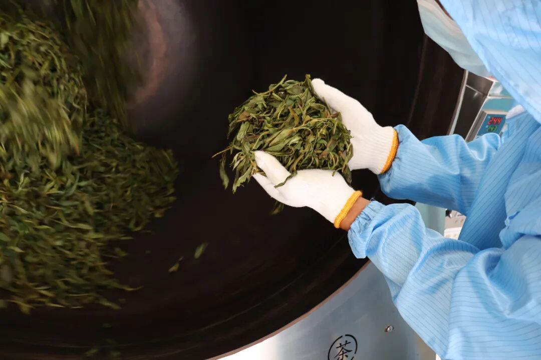 项目建设过程中,当地翻新改建了阿贡田村小学闲置教学楼,同时新建茶叶展销区、品鉴区和电商直播区,还购置了萎凋机、杀青机、揉茶机、烘干机、发酵机等一系列制茶加工设备。如今走进初制所,标准化的生产流程井然有序,从茶叶筛选、萎凋,到杀青、揉捻、干燥,每一个环节都有科学参数把控。“过去炒茶全凭经验,火轻了茶叶生涩,火重了又会焦苦;揉捻也靠手工,力道和时长没个准头。”制茶师傅瞿世杰感慨道,“现在有了这些设备,既能精准控温保证茶叶失水均匀,又能通过机械操作提升揉捻效率,还保留了‘轻转重压’的传统技法,守住了茶叶的醇厚回甘。”