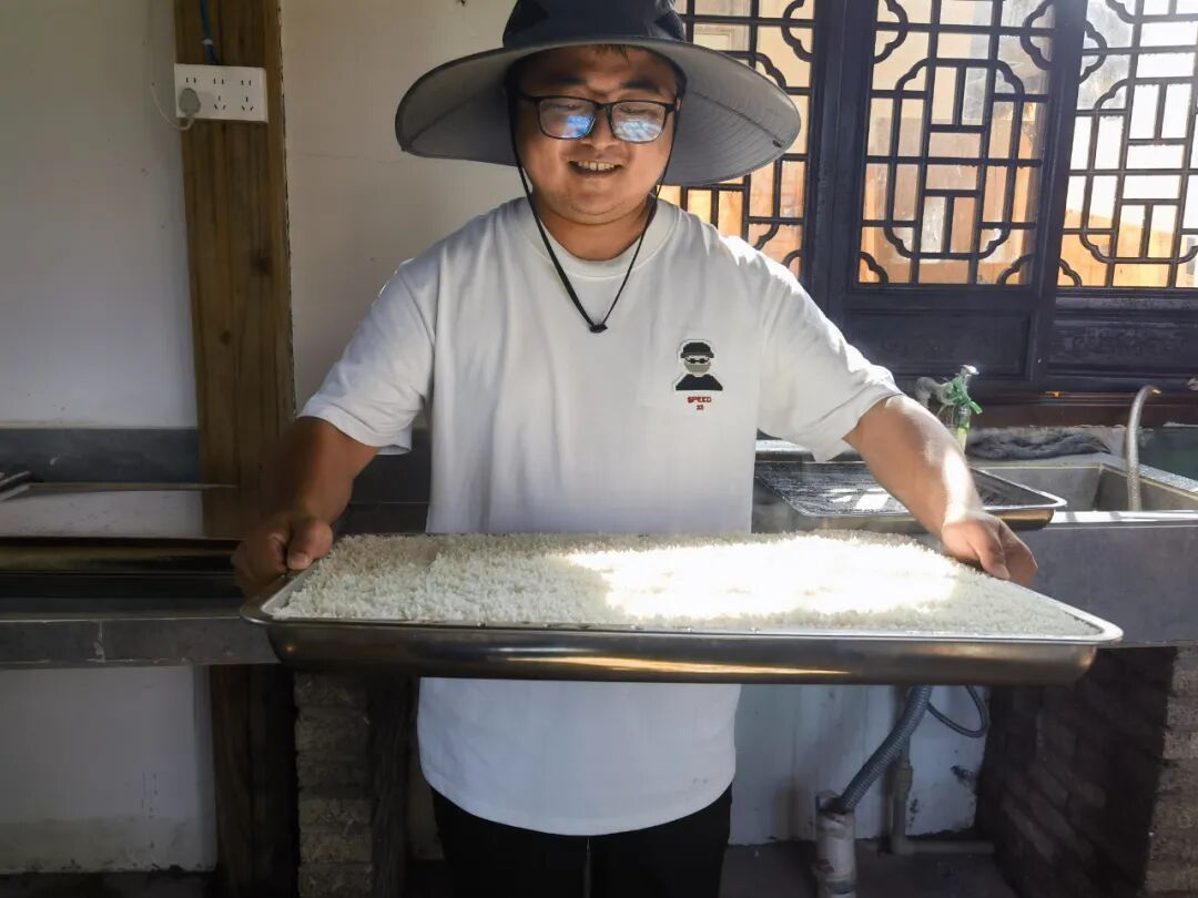 在龙江乡赧等村的精米加工厂内,今年新收的稻谷历经碾磨、筛选,一粒粒色泽泛红、饱满莹润的红细软米应声而出。“普通大米要多碾才好吃,红细软米得保留红色米皮,这样才能最大化保留营养。”精米厂老板周兴国一边包装一边分享加工诀窍。“现在,一年帮助农户加工红细软米800多吨,自己也能卖出300多吨,主要通过线上平台销往上海、浙江等地,今年销量肯定还能涨。”周兴国笑着说。