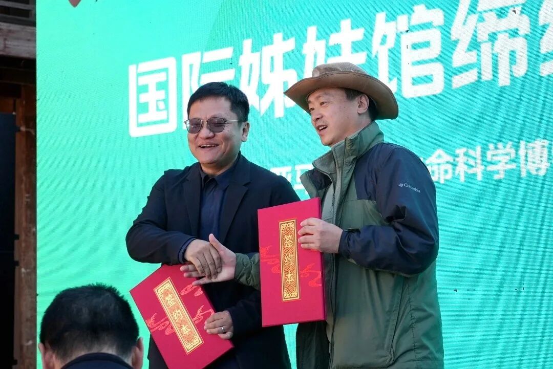 揭幕现场还同步举行多项活动:博物馆向尹烨博士颁发捐赠证书,与肯尼亚马赛马拉博物馆签订国际姊妹馆合作协议,并为首批科普讲师授证。尹烨博士亲自主持首场巡馆导览直播,带领与会嘉宾走进场馆,开启腾冲生命科学博物馆的首次探秘之旅。