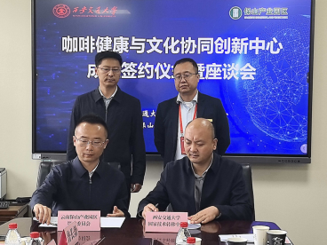 日前,云南保山产业园区管理委员会与西安交大国家技术转移中心共建的“咖啡健康与文化协同创新中心”在西安交大兴庆校区正式揭牌,中心签约仪式暨座谈会同期举行。