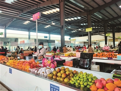 龚家庄农贸市场的建成,不仅满足了周边居民菜篮子的需求,还解决了一部分就业问题,壮大了社区集体经济。兰城街道城南社区党总支书记郑绍飞介绍:“目前,市场内有336个摊位、124间铺面,可以带动2478人就业。此外,3个社区也有了自己的集体经济收入。”