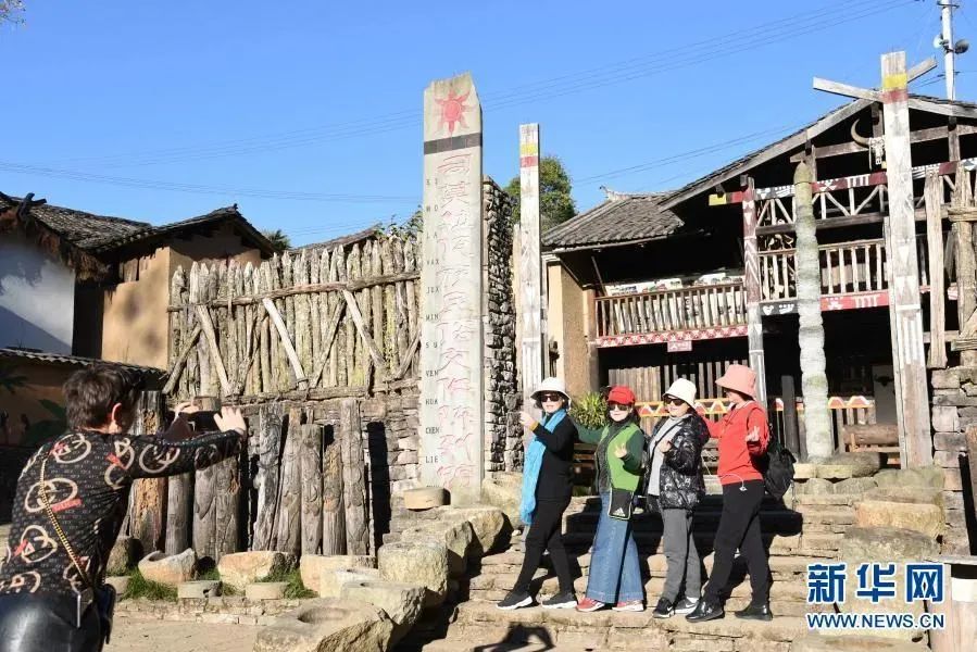 游客在司莫拉佤族村拍照留念 林碧锋 摄