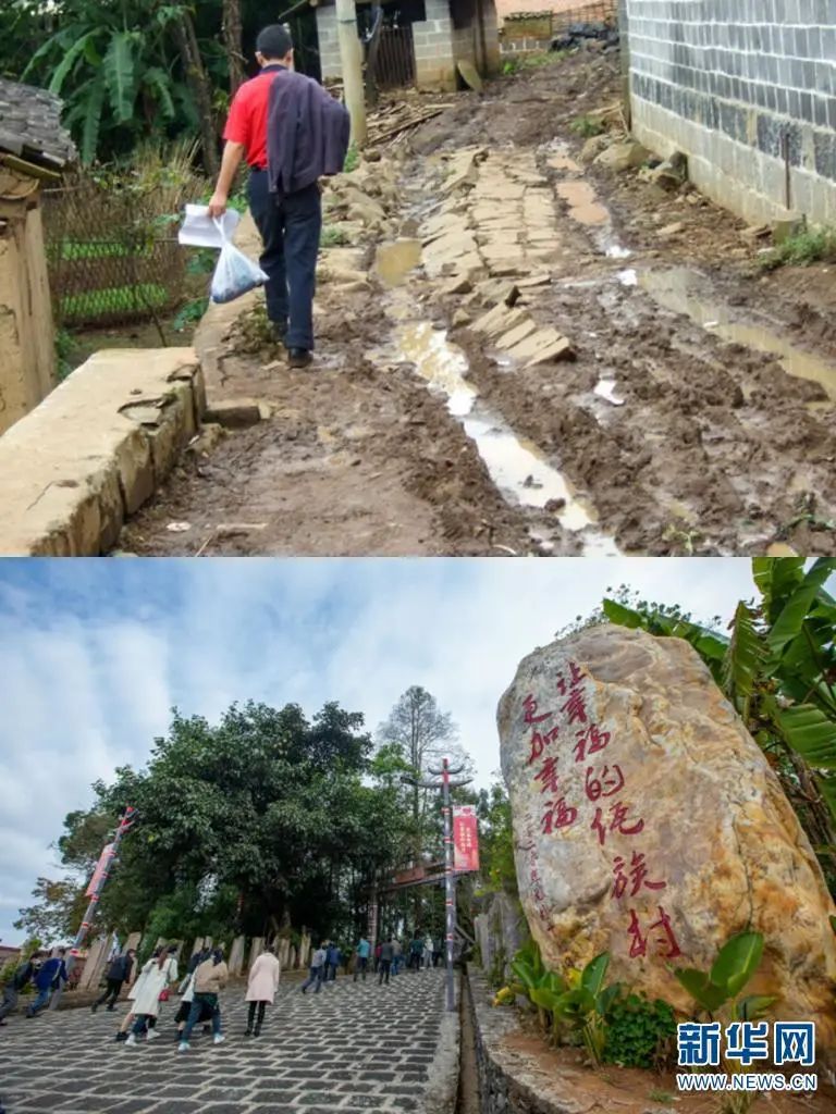 上图为司莫拉曾经的村内道路(腾冲市清水镇供图);下图为如今的司莫拉进村道路 赵普凡 摄