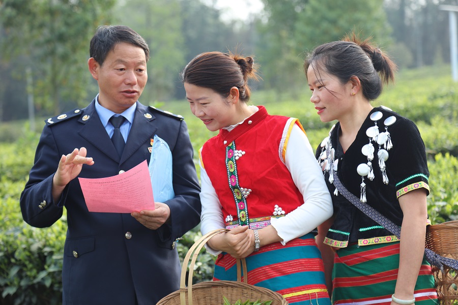 税务干部向茶农宣讲税收新政策(资料图)。国家税务总局腾冲市税务局 供图