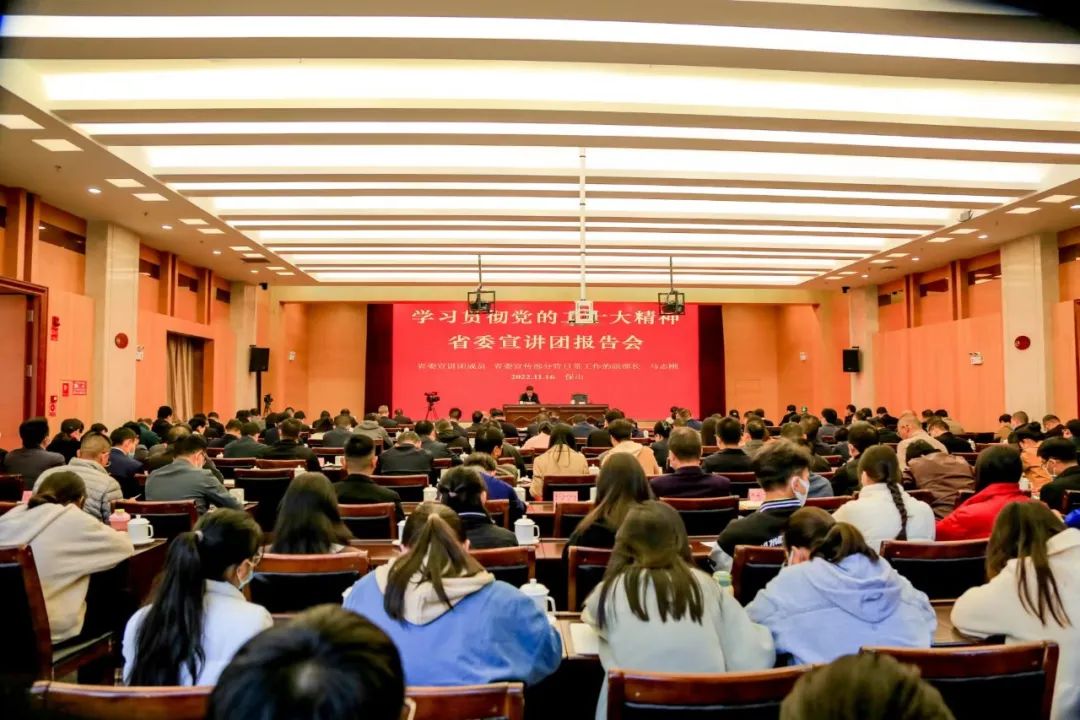 11月16日,根据省委的统一安排,学习贯彻党的二十大精神省委宣讲团报告会在永昌会堂举行。省委宣讲团成员、省委宣传部分管日常工作的副部长马志刚作宣讲报告。保山市委书记杨军主持报告会。市委常委,市人大常委会、市政府、市政协领导班子成员,市中级人民法院院长、市人民检察院检察长,社科理论界代表、在保高校师生代表等聆听报告。