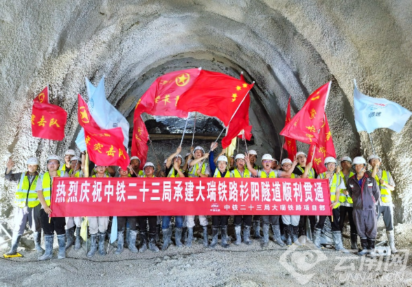 3月28日上午,经过建设者14年的艰苦奋战,中缅国际大通道重要组成部分,云南大(理)瑞(丽)铁路杉阳隧道安全贯通。至此,大瑞铁路大理至保山段21座隧道全部贯通,为大理至保山段先期开通运营奠定基础。