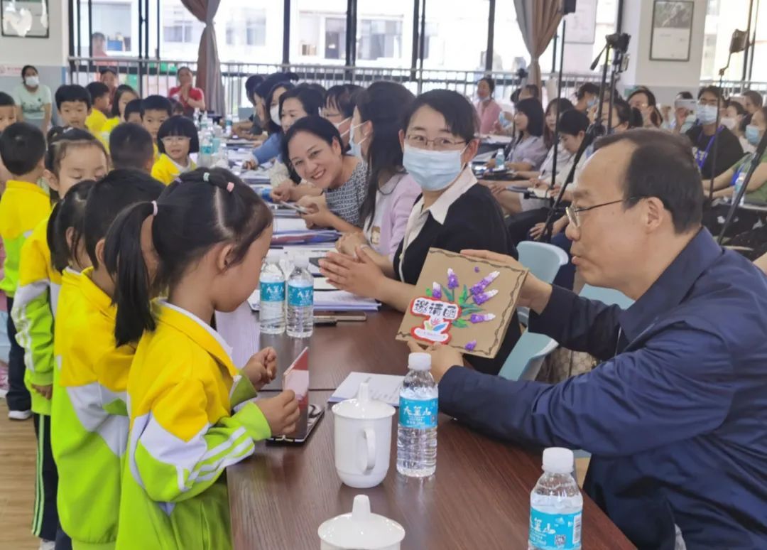 杨军一行还查看了校园环境、班级环境,详细了解幼儿学习生活等情况,深入部分班级参加学生游戏,与小朋友面对面亲切交流,为他们提前送上“六一”儿童节的祝福。