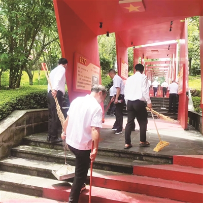 6月30日下午,龙陵县林草局开展了系列活动庆祝中国共产党成立102周年。图为该局到西山坡开展爱国卫生大扫除活动,发挥了党员冲在一线、干在实处的先锋带头作用。