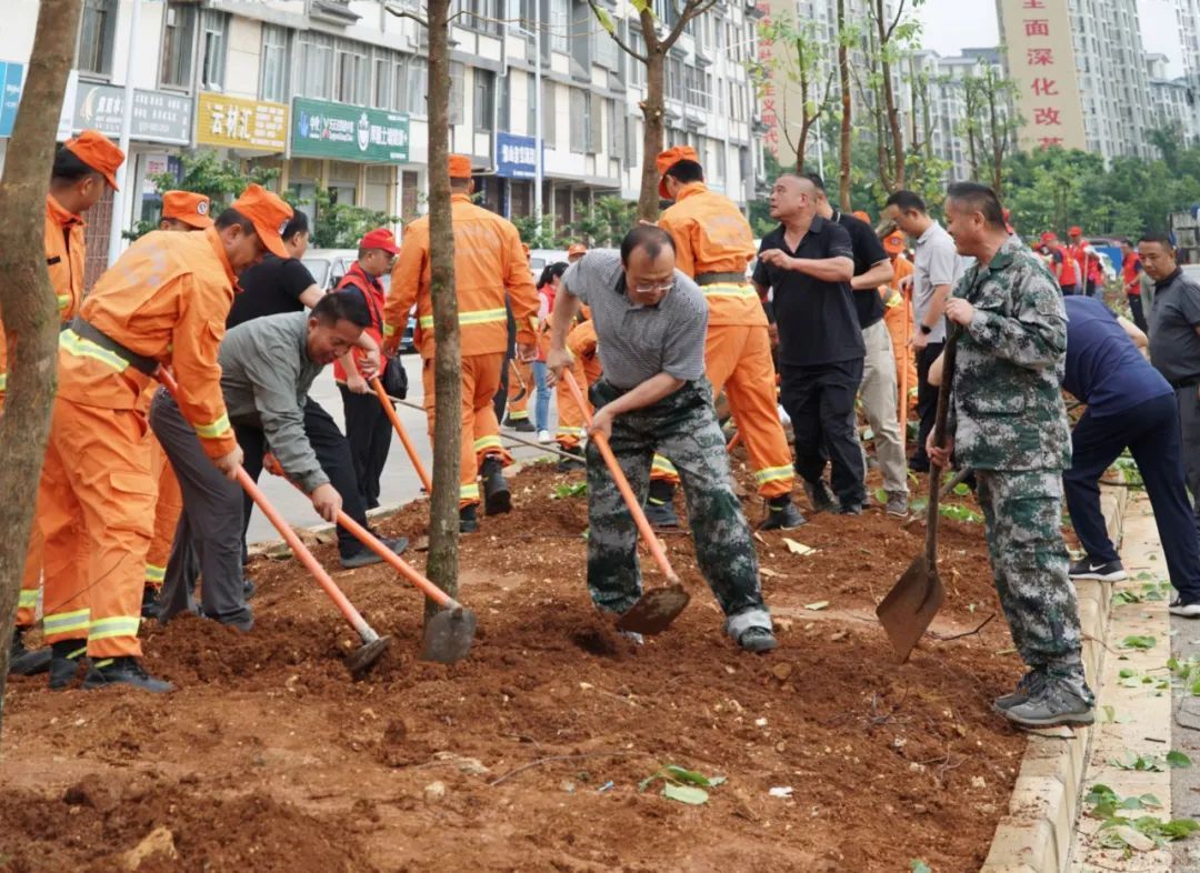 植树活动现场,大家热情高涨、干劲十足,挥锹挖坑、扶苗填土、固培浇水,各个环节衔接有序,合力栽下一株株树苗。在大家的共同努力下,包括香樟、清香木、云南樱花等多个树种、近13000余株新苗扎根沃土,迎风挺立,在雨中焕发出勃勃生机,为中心城区增添了清新绿意。大家纷纷表示,活动进一步坚定了各级各部门共同推进绿美保山建设的决心,也为更好地号召广大群众共建绿美家园、共享宜居保山打下了坚实基础。