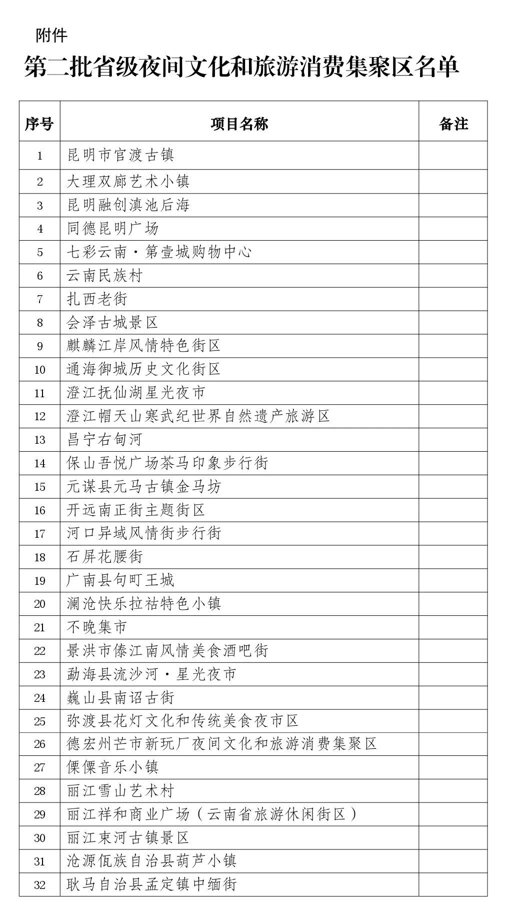 根照《文化和旅游部办公厅关于开展第三批国家级夜间文化和旅游消费集聚区建设工作的通知》(办产业发〔2023〕151号)要求,我厅在组织开展第三批国家级夜间文化和旅游消费集聚区评审工作的同时,组织开展了第二批省级夜间文化和旅游消费集聚区评审工作,为下一批国家级夜间文化和旅游消费集聚区评选做好储备。经对象申报、主体推荐、州市初审、省级评审,现将昆明官渡古镇景区等32家省级夜间文化和旅游消费集聚区(详见附件)予以公示。