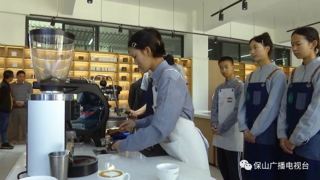 保山中等专业学校校长王洪华介绍说:“建产教融合的实训基地,目前已经有了2000平方米的理论教学、烘焙、杯测、拉花等专业实训的教室,可供500人左右的实训;我们引入了咖啡企业的生产线,在校内就完成了咖啡的精深加工,学生全程参与咖啡的生产;目前学校已经建设了一支由学校的专任教师和企业的技术员任兼职教师的师资团队。通过以上的三项措施助力保山咖啡产业高质量发展。”