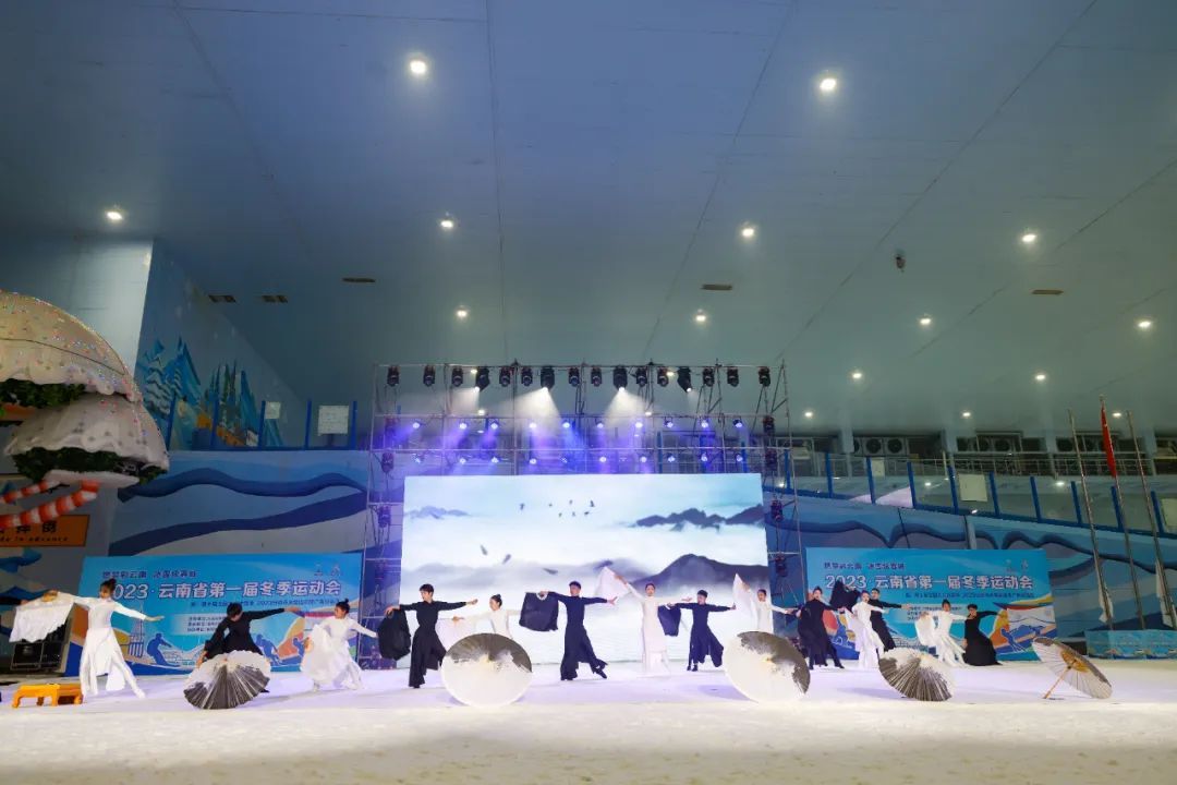 接过会旗后,闭幕式上播放了保山承办云南省第二届冬运会宣传片,永子围棋作为保山的体育文化名片亮相闭幕式,舞蹈《永子传棋》展现了现代小伙穿越到古代,和徐霞客对话围棋的梦幻以及黑白棋子在冰雪中对弈的奇特场景。