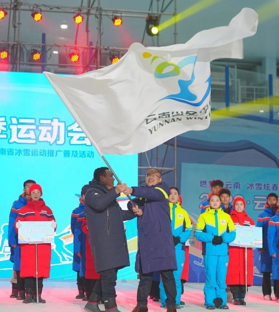 近日,云南省首届冬季运动会在昆明融创文旅城落下帷幕,闭幕式上,第一届冬运会承办方昆明市将会旗交还组委会,保山市接过组委会移交的会旗,标志着云南省第二届冬季运动会将于四年后在保山举办。