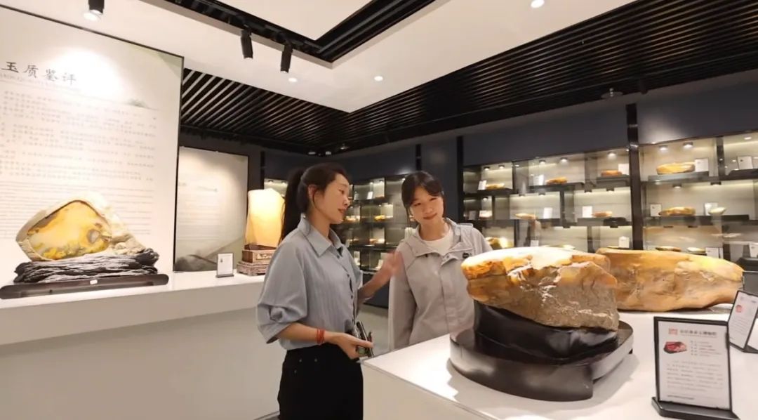 在运启黄龙玉博物馆,主播带大家参观了黄龙玉科普展区和精品原石展厅。运启黄龙玉博物馆馆藏品3000多件,是目前国内规模最大、品类最全、收藏价值最高的黄龙玉博物馆。