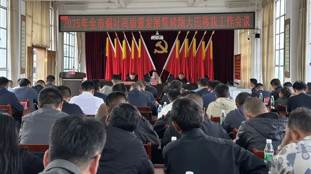 4月13日,2025年全市烟叶高质量发展暨烤烟大田移栽工作会议在曲石镇召开。主要任务是分析当前形势、统一思想、明确任务、压实责任,动员全市上下抢抓农时、迅速行动,高标准、高质量完成烤烟大田移栽工作,为全年烤烟生产收购提质增效打下坚实基础。