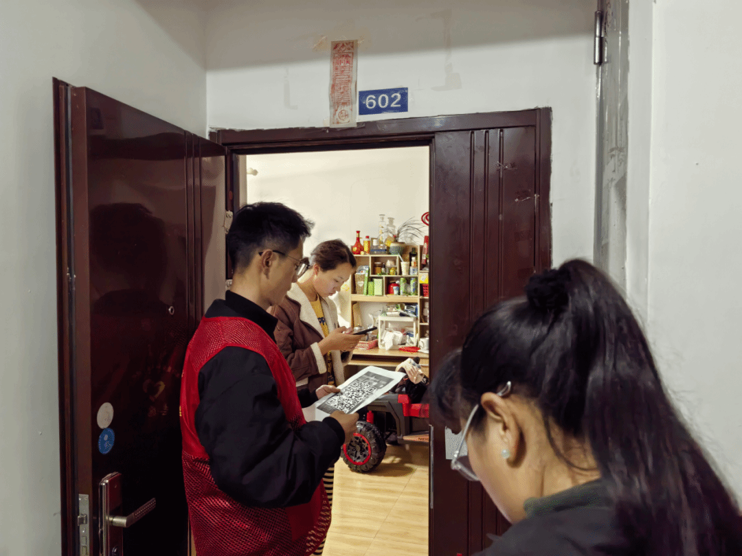 在日常管控上,社区以综治中心为核心组建 3 个专项采集小组,联动警务室、物业公司等,创新“流动+入户”模式:在小区出入口、快递网点等设临时采集点,同时利用早晚及周末入户,逐户核对证件、登记家庭成员等信息,夯实数据基础。