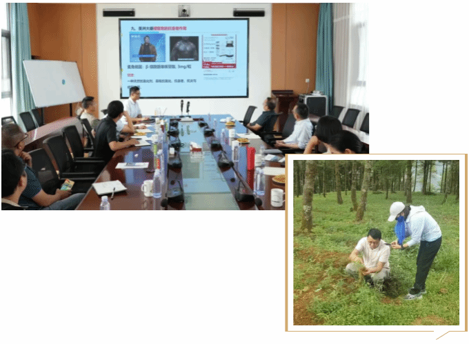 在中医药研发领域,来自中国科学院昆明动物研究所、大理大学、昆明医科大学的四名专家深入腾药集团美洲大蠊养殖基地、恒益食品加工园区,对美洲大蠊药材、心脉隆注射液物质基础代谢学以及美洲大蠊相关大健康产品开发、关键工艺技术、技术指标等领域开展专业培训和研究研讨,结合前沿科研技术,为当地的中医药创新研发提供新思路、新方法,助力开发更具疗效和市场竞争力的中医药产品。
