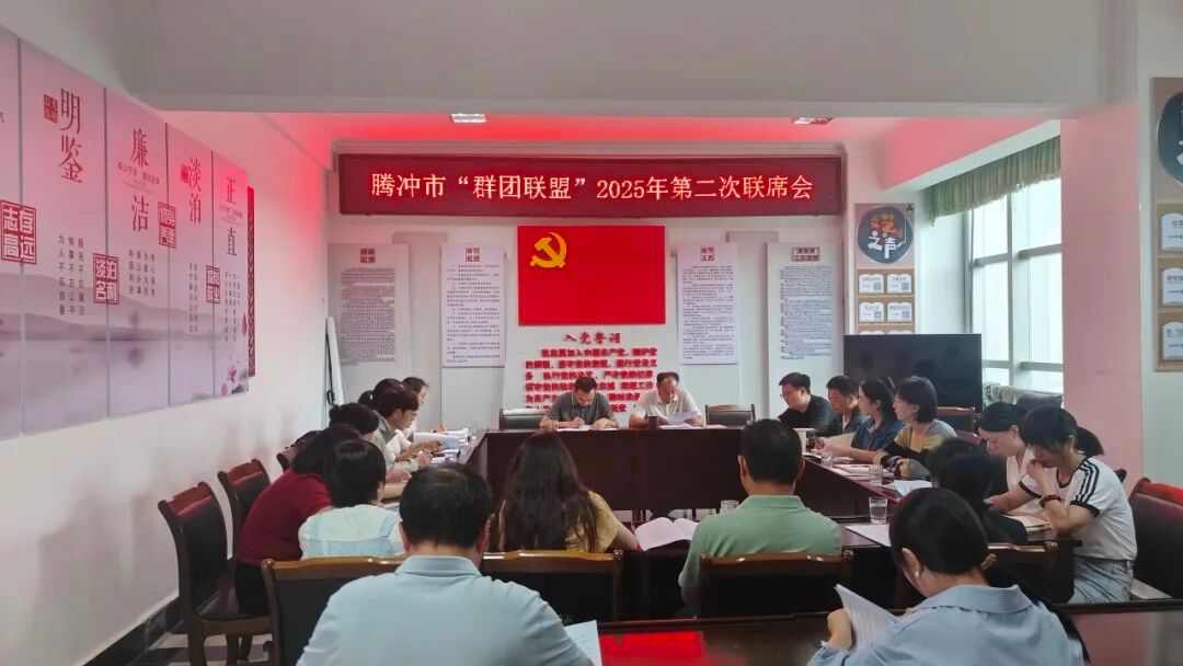 9月15日,腾冲市群团“联盟”召开2025年第二次联席会议。9家群团“联盟”成员单位和市委办、市委组织部、市委社工部有关领导及第一轮轮值的群团“联盟”综合办公室成员参加会议。会议全面总结了前阶段协作成果,研究部署了下一步重点任务,旨在进一步凝聚群团组织力量,更好服务腾冲经济社会发展大局。