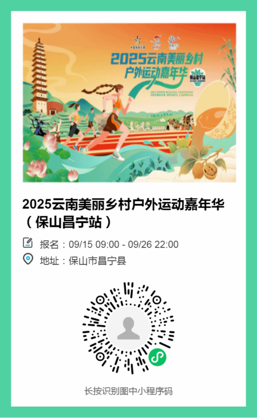 本次活动报名截止日期为2025年9月26日(星期五)22:00点。心动不如行动,赶紧报名加入我们,10月1日,我们欢聚保山昌宁,不见不散!