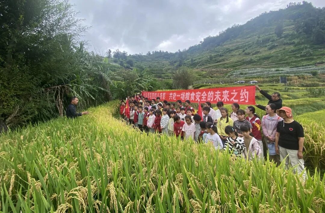 眼下,镇安镇大水沟村的旱稻田里稻穗微垂,一片生机。这片因缺水近十年未种水稻的土地,凭借龙陵县旱地优质稻推广项目重新焕发活力。9月24日,村委会联合县农技推广中心,邀请村小学师生走进稻田,上了堂农事体验与粮食安全教育课。