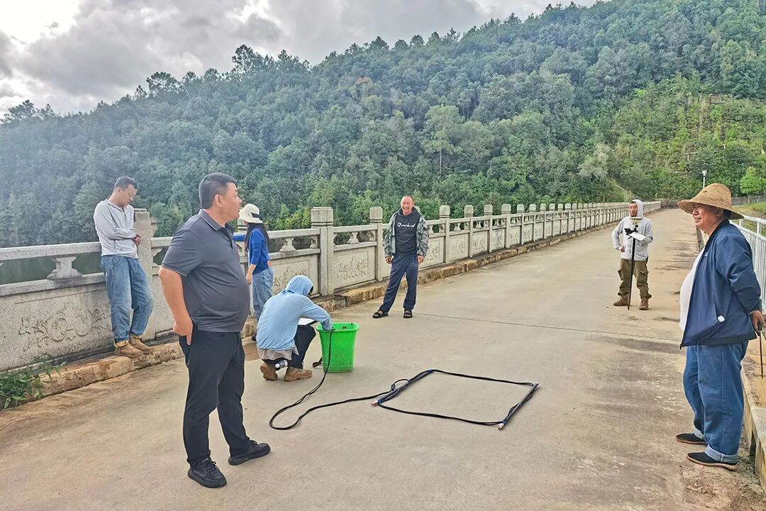 长岭岗水库位于昌宁县田园镇达仁村,设计总库容880万立方米,是一座小(一)型水库,灌溉面积达2.87万亩,在全县灌溉、供水、防洪等方面发挥着不可或缺的作用。“保障大坝的安全稳定是我们义不容辞的责任,组织开展此次安全鉴定工作十分重要,而物探勘察是此次安全鉴定工作中关键的一环,可以查明隐蔽性的地质问题。”长岭岗水库现场管理员吉富强说。