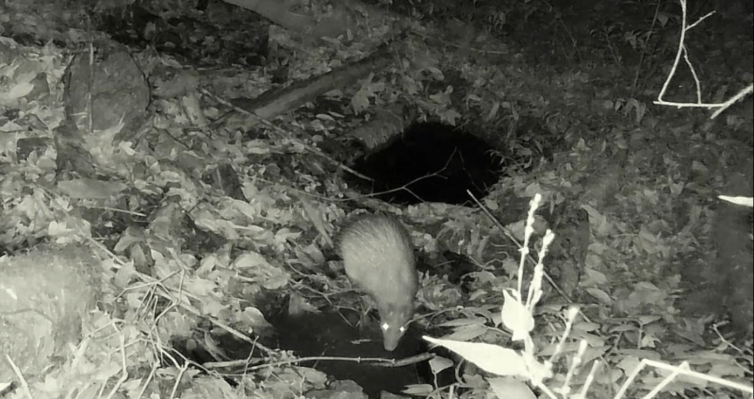 视频里,藏在原始密林下的一处天然小水塘成为鸟兽饮水觅食共乐的“集结地”。在清澈的水塘边,先是十多只点斑林鸽围拢到水塘边,有序排队饮水。时不时还在水塘边相互追逐嬉闹;随后,兽类家族的短尾猴猴群也来到水塘边,有的趴在塘边低头饮水,有的翻动地上的石块或枯枝落叶觅食,吃饱喝足后的猴群就蹲坐在石头上休息养神。还有一只调皮的半成年猴直接对着镜头玩起了自拍;当夜幕降临后,兽类“家族”的斑林狸、椰子狸和帚尾豪猪也趁着夜色来到水塘边“夜游”。它们凭借自身敏锐的听力和视力,或在水塘周围东张西望地寻找食物,或漫步到水塘边喝水解渴,尽享“独身”的安静而惬意的“夜生活”。