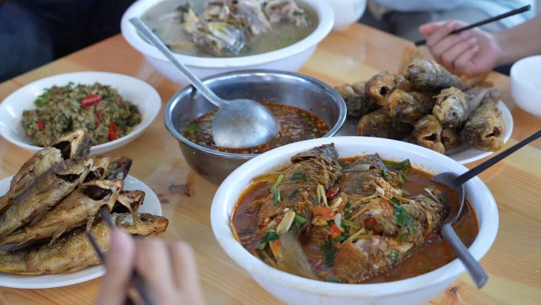 稻田里的鱼,不仅富了农户,更成了龙江乡吸引游客的“流量密码”。每到周末,稻田便热闹起来,挤满了前来体验捉鱼乐趣的游客。农家乐老板康万秋忙得脚不沾地,一边从农户手中收鲜鱼,一边招呼客人:“今年自家养的1000多斤鱼早就卖完了,现在得从其他农户那收,15 元一斤进货,游客下田捉鱼按20元一斤算,加工成菜品就是35元一斤。从国庆到现在,我已经卖了3000多斤鱼,收入差不多10万元。”