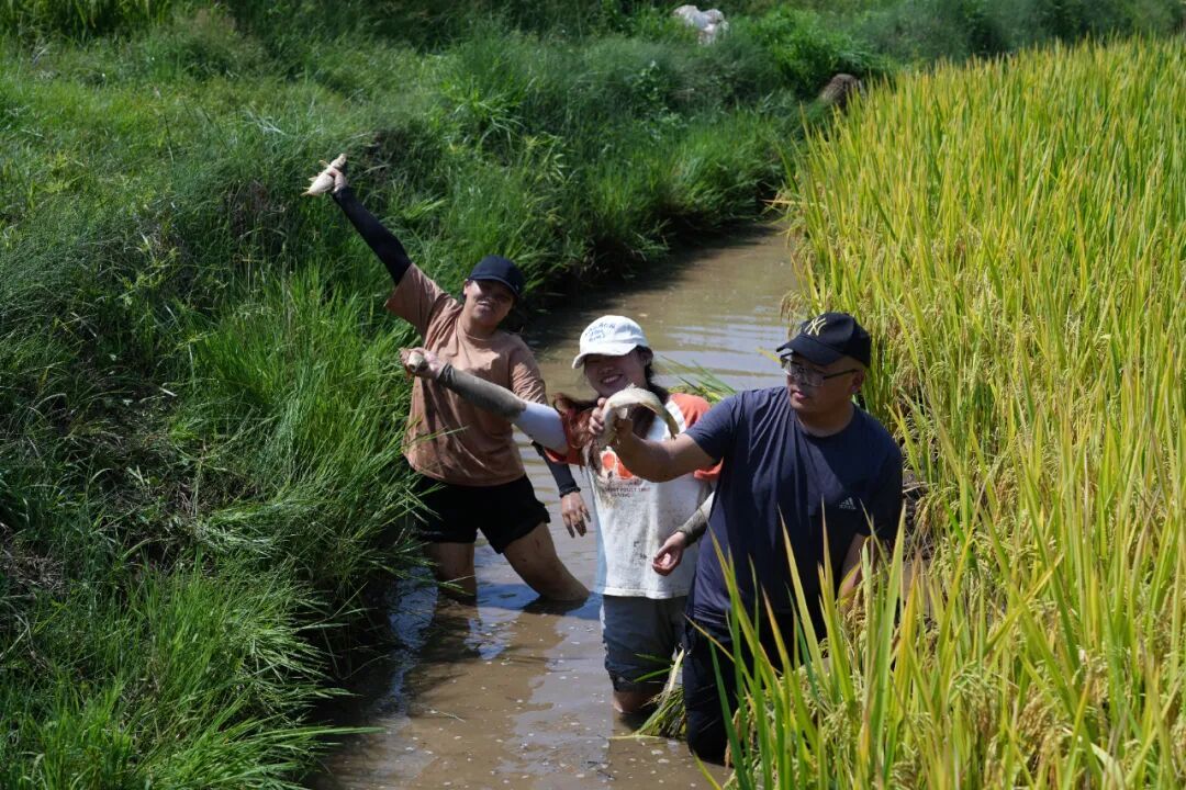 在田里捉鱼回来的游客杨梅艳一边展示自己的成果一边意犹未尽地告诉记者:“太过瘾了,不仅可以欣赏万亩稻田美景,还可以下稻田捉鱼, 回来吃的也是自己抓的鱼,价格透明,体验感非常好,真是不虚此行。”