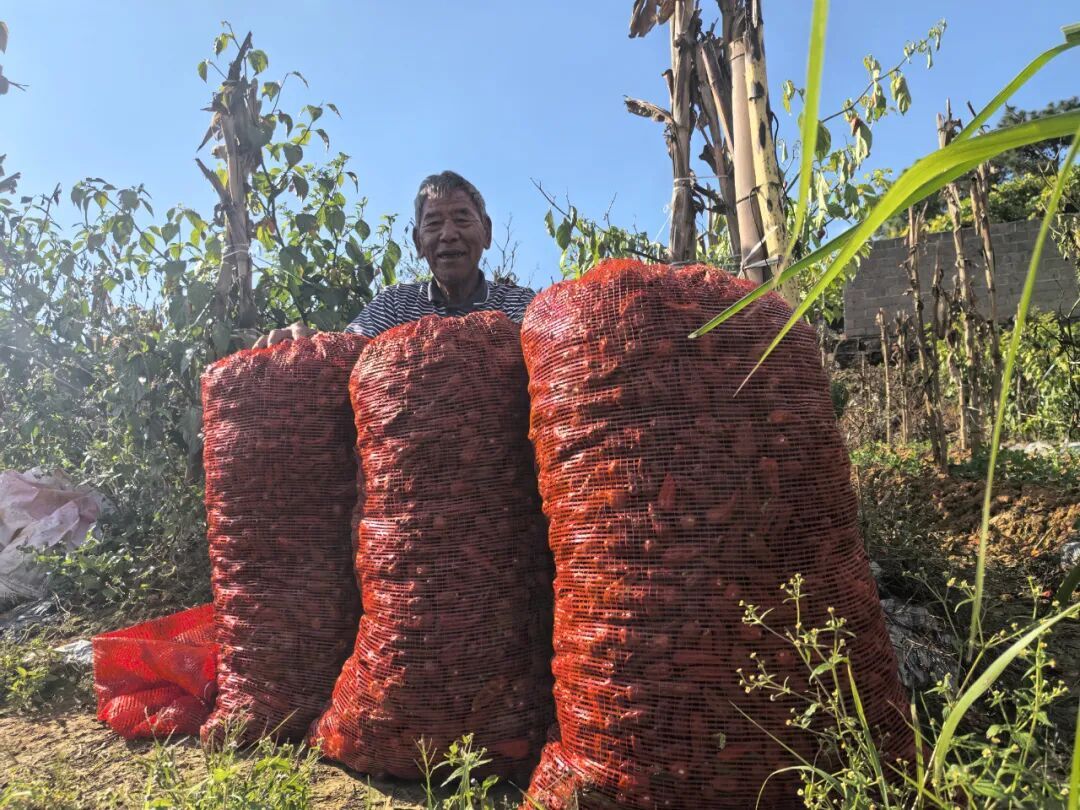 今年,杨家山村种植工业辣椒60亩,涉及农户20余户,亩产达1500市斤,预计总产量可达9万市斤,按当前每市斤3元的市场价格计算,总产值约27万元。工业辣椒4月种植,8月底开始采摘,采摘期可持续至12月,对劳动力的需求量较大,种植、采摘、管理等每一个环节都能为村民创造就业岗位和增收渠道,有效吸纳村民从事季节性务工,实现了“顾家、务工、增收”三不误。