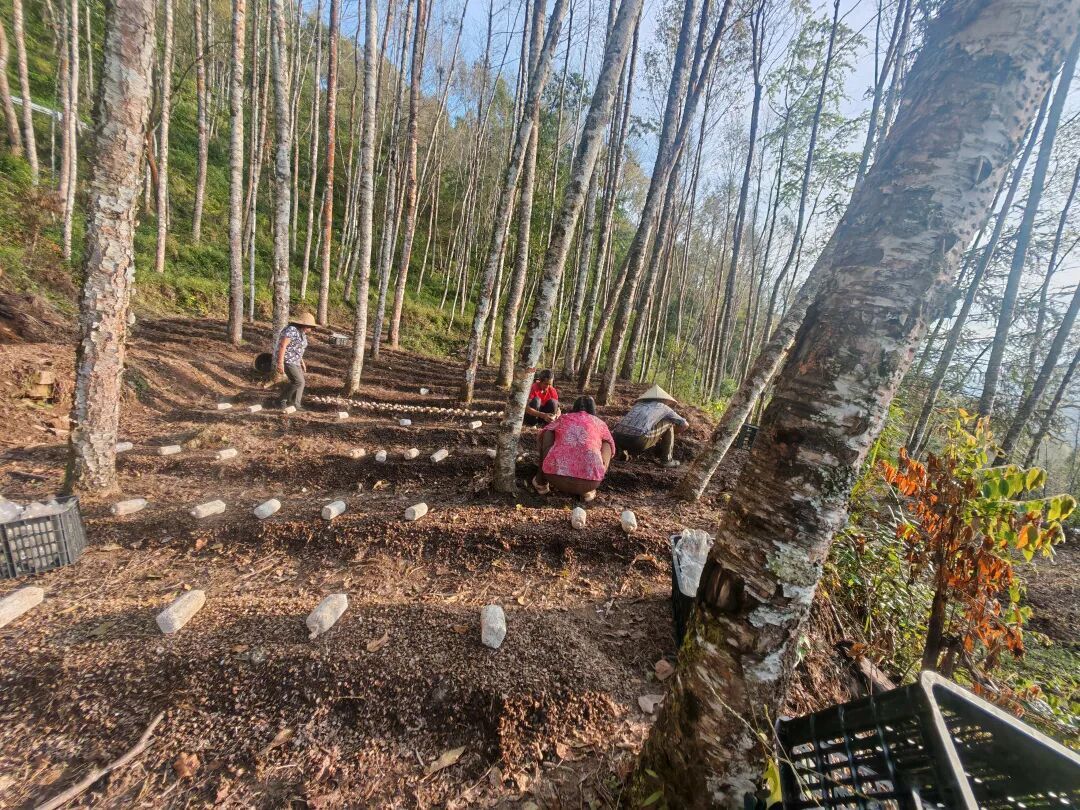 但新寨村并未满足于此。近年来,村“两委”着力在“延链、补链、强链”上下功夫。2024年,利用180万元乡村振兴衔接资金建设的菌包加工厂顺利投产,让农户实现了“家门口”就业,延伸了产业链,每年为村集体贡献4万余元收入。同时,投资建成的冷库成功引进企业合作发展赤松茸种植50余亩。这两个项目不仅有效提升了农产品的附加值和抗风险能力,还季节性带动超过200名群众就近务工,构建了“种植+加工+仓储”的完整产业闭环。2025年该村继续种植木耳15亩,探索林下种植赤松茸10亩。与此同时,始于2017年的石斛枫斗加工产业也日益壮大,如今已带动全村400余人投身其中,户均年增收超8000元。