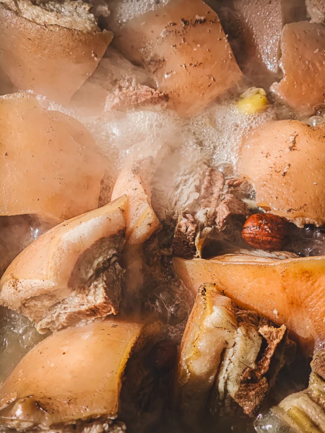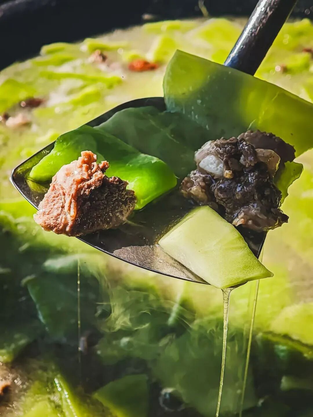 没想到仙人掌也能入菜?这道仙人掌排骨汤正是农家饮食智慧的体现。精选排骨焯水后慢炖至软烂,加入切好的仙人掌块继续炖煮,仙人掌的脆嫩与排骨的醇厚相互碰撞,汤汁清润鲜香,入口清爽,是年猪饭中兼具创意与营养的别样风味。