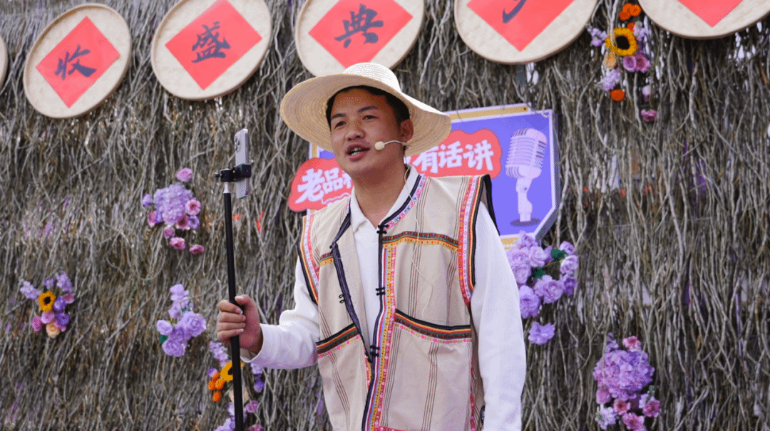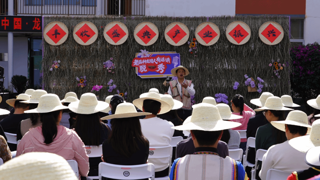 作为系列活动首场演出,本地直播达人曹大成登台分享。他通过电商直播将龙陵石斛、咖啡、土豆等农特产品推向全国,现场讲述了自己从返乡青年到“带货达人”的创业经历,还介绍了龙陵近年来,在产业升级、乡村发展等方面的变化。其贴近生活的表达获现场掌声,也让“老品种”既指本土物产、传统民俗,也喻指守正创新的龙陵人这一内涵更加明确。