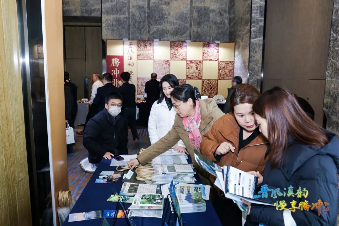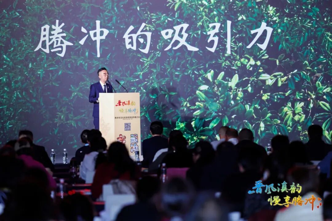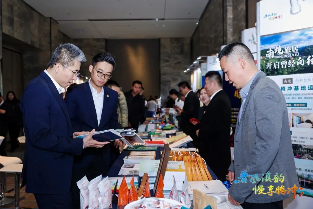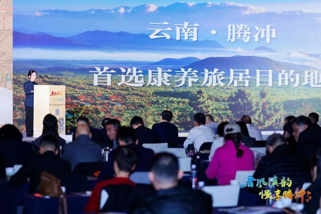 推介活动现场,以腾编、腾宣等为代表的腾冲非物质文化遗产代表性项目尽显匠心;翡翠天麻、灵芝、茶山鸡等腾冲农特产品体现地域特色;高黎贡山、清凉山、甘露古道、绮罗茶业等腾冲茶叶企业彰显本土产业实力;热海拾光、华侨城、和顺里等地产企业展现旅居地产魅力;腾玩家、云栖、光民国际旅行为代表的旅行社带来优质旅游服务方案;恒益集团、火山热海公司、柏联温泉等康养旅居企业呈现专业康养体验,全方位立体式展现了腾冲的产业活力与文化底蕴。